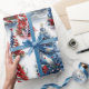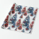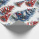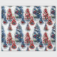 Vermelho branco e azul, estrelas e listras, fita festiva patriótica Árvores de Natal no padrão de neve para as festas e presentes de Natal deste ano. Padrão sem costura para enrolar até os maiores presentes de Natal sem interromper o cenário - bom para pacotes de médio a menor O design é de 6 polegadas por 6 polegadas -