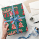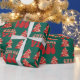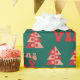 O retrô diverso e festivo vibra papel embrulhando árvores vermelhas, verdes e minimalistas de ouro.