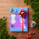 Papel De Presente Árvores de Natal Roxas Azuis Neves Azul