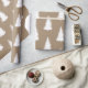 Papel de embrulho de Natal Kraft para os feriados que inclui grandes árvores de espruce brancas de madeira em padrão repetido em papel de embalagem de cor kraft.