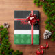 Padrão moderno e moderno de lacrosse verde esportiva com varas de lacrosse e um fundo branco de bola de borracha com as palavras Feliz Natal e um padrão verde de árvores de natal. Ideias de presentes esportivos para homens e garotos e meninas. Ideias de presente de natal de Lacrosse.