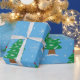 Papel De Presente Árvores de Natal Verdes com neve em azul