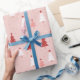 Papel De Presente Árvores De Natal Vermelhas E Rosa Em Um Fundo Rosa