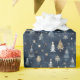 Papel De Presente Árvores Douradas e brancas, estrelas no fundo azul