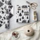 Este papel de embrulho de feriado bonito apresenta um padrão de casas negras, pinheiros e flocos de neve sobre fundo branco. Use para embrulho de presente ou para artesanatos de papel, incluindo desacoplamento. De nossos corações aos seus Felizes Feriados!