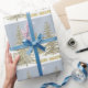 Um familiar, Cartões de natal, foi digitalmente editado, para criar este desenho gráfico, de ouro guilhotinado, árvores, agrupadas, sobre uma neve, pano de fundo com brilho, Simbólico, Estrela Sagrada, contra um céu azul ardósio.
