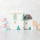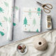 Árvores verdes de Natal bonitas e bolinhas de ouro sobre fundo branco. Modelo de papel de embalagem personalizável