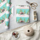 Papel De Presente Árvores Verdes Douradas Estrelas e Pinguins
