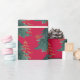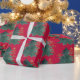 Um impressão de papel de férias de inverno, um design de floresta em vergreens, reforçado com ouros flocos de neve e ouros de neve carregadas em vermelho rico.
