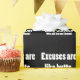 Vamos encarar, desculpas são como bumbuns. Todos nós os temos. Este ditado engraçado e humorístico é tão verdadeiro e perfeito para quem inventa muitas desculpas, é um preguiçoso, preguiçoso ou que tenta sair das coisas. presente de gag excelente ou ideia de presente de elefante!