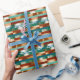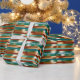Este design de papel embrulhado elegante de Natal apresenta um padrão de listras festivas com matizes de ouro metálico, teal, verde e cobre alternados, criando uma elegante e moderna estética de férias. O recurso de destaque é o texto personalizável que é executado ao longo de uma das faixas, que pode ser personalizado com qualquer mensagem, como "Feliz Natal [Nome] de [Remetente]". A aparência metálica acrescenta um efeito de shimmering, perfeito para elevar sua apresentação de presente de feriado. Ideal para criar um toque exclusivo e pessoal aos seus presentes envoltos.