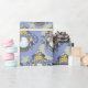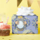 Um velho feiticeiro com capa azul olhando para a bola mágica de cristal.