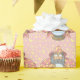 Um velho feiticeiro com capa rosa olhando para a bola mágica de cristal.