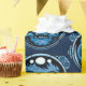 Imagem vetorial de um astronauta zombie com grandes olhos vestindo um capacete espacial com um escudo de vidro rachado em tons de azul. Etiquetas: astronauta, cosmonauta, capacete, zombie, espaço, astrônomo, monstro, cadete, cadete, morto
