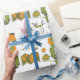 O padrão de quebra-presente divertida apresenta muitos elementos de aventura e ao ar livre, incluindo mochilas, botas de caminhada, tendas e mapas