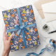 Papel De Presente Aves de Chinoiserie marinho e Laranja