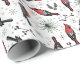 Este papel festivo de embrulho da natureza apresenta um padrão divertido de aves cardeal vermelhas desenhadas à mão, pínus, groselhas vermelhas e estrelas minúsculas, todas sobre um fundo branco elegante.