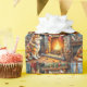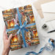 Papel De Presente Azawakh Sitting by Fireplace with Christmas Lights