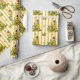 Papel de embrulho divertido com padrão de azulejos inspirado no estilo grego para quem ama azeitonas. O design mostra um padrão contínuo de azeitonas e faixas amarelas.