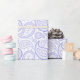 Um papel de envolvimento construído com um teste padrão de paisley, azul marinho no branco. Personalize o fundo branco em uma forma facil.