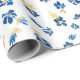 Papel De Presente Azul-aquarela e flor de ouro