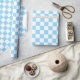 Padrão de tabuleiro retroativo com a cor de fundo de sua escolha. Papel de embrulho de chá de fraldas azul claro e branco. Encapsulamento clássico de presentes.