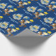Papel de embrulho de festa de aniversário de Feira Renascentista Cuta, que apresenta um cavaleiro loiro numa armadura brilhante num cavalo próximo a um castelo azul da meia-idade. Um presente de crianças legal e personalizado para um pequeno príncipe que ama heróis fantásticos dos tempos antigos.