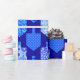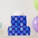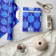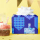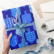 Este brilhante e contemporâneo design de Chanucá apresenta formas simples e padrões complexos em uma paleta azul e branca clássica