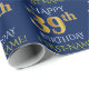 Este design de papel de embrulho apresenta uma mensagem como "FELIZ 39º ANIVERSÁRIO", com o "39º" a ter uma aparência falsa/imitação de ouro. Ele também apresenta um nome personalizado e um fundo de cor azul. Talvez possa ser utilizado quando se dá presentes para o trigésimo nono aniversário de alguém. [~Z0000135]
