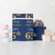 Este design de papel de embrulho apresenta uma mensagem como "HAPPY 65th BIRTHDAY", com o "65º" com aparência falsa/imitação de ouro. Ele também apresenta um nome personalizável e um fundo de cor azul. Talvez possa ser utilizada quando se dá presentes para o sexagésimo quinto aniversário de alguém. [~Z0000135]