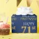 Este design de papel de embrulho apresenta uma mensagem como "FELIZ 71rua ANIVERSÁRIO", com a "71ruas" com aparência falsa/imitação de ouro. Ele também apresenta um nome personalizável e um fundo de cor azul. Talvez possa ser utilizado quando se dá presentes para o 71º aniversário de alguém. [~Z0000135]