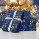 Papel De Presente Azul, Dourado "FELIZ 9º ANIVERSÁRIO"