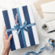Papel De Presente Azul e Branco Marinho Náutico, com risca