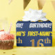 Este design de papel de empacotamento apresenta uma mensagem como "PRIMEIRO NOME DO 16º ANIVERSÁRIO!", com o "16º" a ter uma aparência de cor falsa/imitação em forma de ouro, e com o nome e "ANIVERSÁRIO" numa fonte divertida e ousada. O nome pode ser personalizado, e o fundo tem cor azul. Um papel embrulhante como este poderia talvez ser usado no empacotamento de presentes de aniversário que são dados a alguém em comemoração do seu décimo sexto aniversário. [~Z0000209]