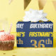 Este design de papel de embrulho apresenta uma mensagem como "FIRSTNAME'S 36th BIRTHDAY!", com o "36º" a ter uma aparência de cor falsa/imitada em forma de ouro, e com o nome e "BIRTHDAY" numa fonte divertida e ousada. O nome pode ser personalizado, e o fundo tem cor azul. Um papel de embrulho como este poderia talvez ser usado para embrulhar presentes de aniversário que são dados a alguém em comemoração de seus trinta e seis anos de aniversário. [~Z0000209]
