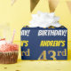 Este design de papel de embrulho apresenta uma mensagem como "ANDREW'S 43rd BIRTHDAY!", com o "43º" a ter uma aparência falsa/imitada de cor dourada, e com o nome e "BIRTHDAY" numa fonte divertida e ousada. O nome é personalizável e o fundo tem cor azul. Um papel de embrulho como este poderia talvez ser usado no embrulho de presentes de aniversário que são dados a alguém em comemoração de seus quarenta e terceiro anos. [~Z0000209]