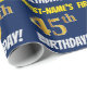 Este design de papel de empacotamento apresenta uma mensagem como "PRIMEIRO NOME DO 45º ANIVERSÁRIO!", com o "45º" a ter uma aparência de cor falsa/imitação em forma de ouro, e com o nome e "ANIVERSÁRIO" numa fonte divertida e ousada. O nome é personalizável e o fundo tem cor azul. Um papel de embrulho como este poderia talvez ser usado no embrulho de presentes de aniversário que são dados a alguém em comemoração de seus quarenta e cinco anos. [~Z0000209]