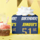 Este design de papel de embrulho apresenta uma mensagem como "JENNIFER'S 51rua BIRTHDAY!", com a "51ruas" a ter uma aparência falsa/imitada de cor dourada, e com o nome e "BIRTHDAY" numa letra divertida e ousada. O nome pode ser personalizado e o plano de fundo tem cor azul. Um papel de embrulho como este poderia talvez ser usado para embrulhar presentes de aniversário que são dados a alguém em comemoração de seus cinquenta anos de primeiro aniversário. [~Z0000209]