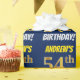 Este design de papel de embrulho apresenta uma mensagem como "ANDREW'S 54th BIRTHDAY!", com o "54º" a ter uma aparência falsa/imitada de cor dourada, e com o nome e "BIRTHDAY" numa fonte divertida e ousada. O nome é personalizável e o fundo tem cor azul. Um papel de embrulho como este poderia talvez ser usado para embrulhar presentes de aniversário que são dados a alguém em comemoração de seus cinquenta e quatro anos de aniversário. [~Z0000209]