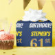Este design de papel de embrulho apresenta uma mensagem como "STEPHEN'S 61rua BIRTHDAY!", com a "61ruas" a ter uma aparência falsa/imitada de cor dourada, e com o nome e "BIRTHDAY" numa letra divertida e ousada. O nome pode ser personalizado, e o fundo tem cor azul. Um papel de embrulho como este poderia talvez ser usado para embrulhar presentes de aniversário que são dados a alguém em comemoração do seu sessenta primeiro aniversário. [~Z0000209]