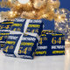 Papel De Presente Azul, Faux/Imitação Dourada, "64º ANIVERSÁRIO"