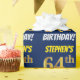 Este design de papel de embrulho apresenta uma mensagem como "O 64º ANIVERSÁRIO DE STEPHEN!", com o "64º" a ter uma aparência falsa/imitada de cor dourada, e com o nome e "ANIVERSÁRIO" numa fonte divertida e ousada. O nome pode ser personalizado, e o fundo tem cor azul. Um papel de embrulho como este poderia talvez ser usado para embrulhar presentes de aniversário que são dados a alguém em comemoração do seu sessenta e quarto aniversário. [~Z0000209]