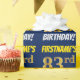 Este design de papel de empacotamento apresenta uma mensagem como "83º ANIVERSÁRIO DO FIRSTNAME!", com o "83º" a ter uma aparência falsa/imitada de cor dourada, e com o nome e "ANIVERSÁRIO" numa fonte divertida e ousada. O nome pode ser personalizado e o plano de fundo tem cor azul. Um papel de embrulho como este poderia talvez ser usado no embrulho de presentes de aniversário que são dados a alguém em comemoração de seu oitenta e terceiro aniversário. [~Z0000209]