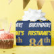 Este design de papel de embrulho apresenta uma mensagem como "FIRSTNAME'S 84th BIRTHDAY!", com o "84º" a ter uma aparência falsa/imitada de cor dourada, e com o nome e "BIRTHDAY" numa fonte divertida e ousada. O nome pode ser personalizado e o plano de fundo tem cor azul. Um papel de embrulho como este poderia talvez ser usado no embrulho de presentes de aniversário que são dados a alguém em comemoração do seu oitenta e quarto aniversário. [~Z0000209]