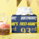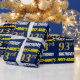Este design de papel de empacotamento apresenta uma mensagem como "PRIMEIRO NOME DO 93º ANIVERSÁRIO!", com o "93º" a ter uma aparência falsa/imitada de cor dourada, e com o nome e "ANIVERSÁRIO" numa fonte divertida e ousada. O nome pode ser personalizado e o plano de fundo tem cor azul. Um papel de embrulho como este poderia talvez ser usado no embrulho de presentes de aniversário que são dados a alguém em comemoração de seu 93º aniversário. [~Z0000209]