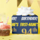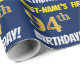 Este design de papel de empacotamento apresenta uma mensagem como "PRIMEIRO NOME É 94.º ANIVERSÁRIO!", com o "94.º" a ter uma aparência falsa/imitada de cor dourada, e com o nome e "ANIVERSÁRIO" numa fonte divertida e ousada. O nome pode ser personalizado e o plano de fundo tem cor azul. Um papel de embrulho como este poderia talvez ser usado no embrulho de presentes de aniversário que estão sendo dados a alguém em comemoração de seu 90º aniversário. [~Z0000209]
