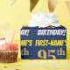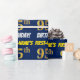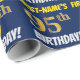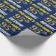 Este design de papel de empacotamento apresenta uma mensagem como "PRIMEIRO NOME É 95º ANIVERSÁRIO!", com o "95º" a ter uma aparência de cor falsa/imitação em forma de ouro, e com o nome e "ANIVERSÁRIO" numa fonte divertida e ousada. O nome pode ser personalizado, e o fundo tem cor azul. Um papel de embrulho como este poderia talvez ser usado para embrulhar presentes de aniversário que são dados a alguém em comemoração de seus 90 e 5 anos de aniversário. [~Z0000209]