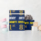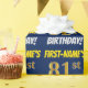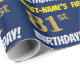 Este design de papel de embrulho apresenta uma mensagem como "PRIMEIRO NOME'S 81rua BIRTHDAY!", com a "81ruas" a ter uma aparência falsa/imitada de cor dourada, e com o nome e "BIRTHDAY" numa letra divertida e ousada. O nome é personalizável e o fundo tem cor azul. Um papel de embrulho como este poderia talvez ser usado no embrulho de presentes de aniversário que são dados a alguém em comemoração de seu oitenta aniversário. [~Z0000209]