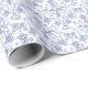 Um rolo do papel de papel de embrulho bonito, com um teste padrão tradicional do ogee de esboços azuis da flor da pervinca em um fundo branco. A parte da "da coleção fino e Painterly do remendo pervinca", este teste padrão pode facilmente ser ajustada para caber todo o papel de envolvimento.