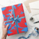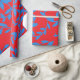Papel De Presente Azul Folhas Vinhas Vermelho Botânico